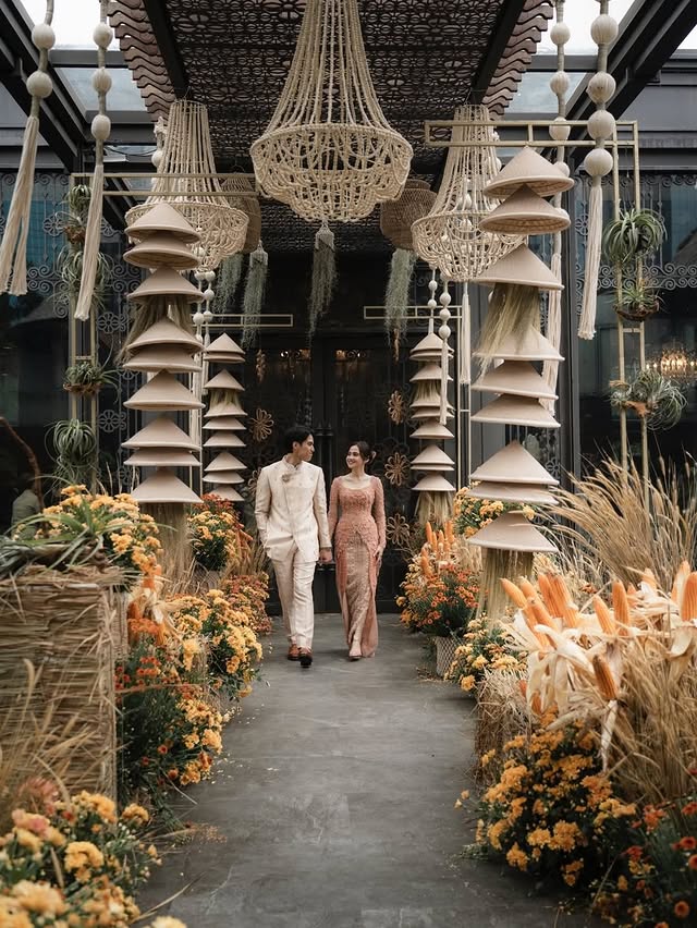 Dalam prosesi lamaran, Syifa Hadju dan El Rumi tampil serasi mengenakan kebaya dan beskap bernuansa soft terracotta karya Studio Boh. Pilihan busana tersebut melengkapi konsep acara sekaligus menonjolkan kesan elegan namun tetap lembut.