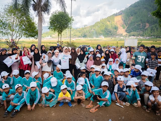 “Program ini juga didukung Cinta Laura, yang hadir dan terlibat langsung dalam usaha membangun kembali fasilitas pendidikan serta membawakan trauma healing untuk anak-anak di wilayah terdampak,” ujar Direktur Bisnis dan Operasional PT KCG, Haryanto Pratantara, dalam keterangan tertulis.